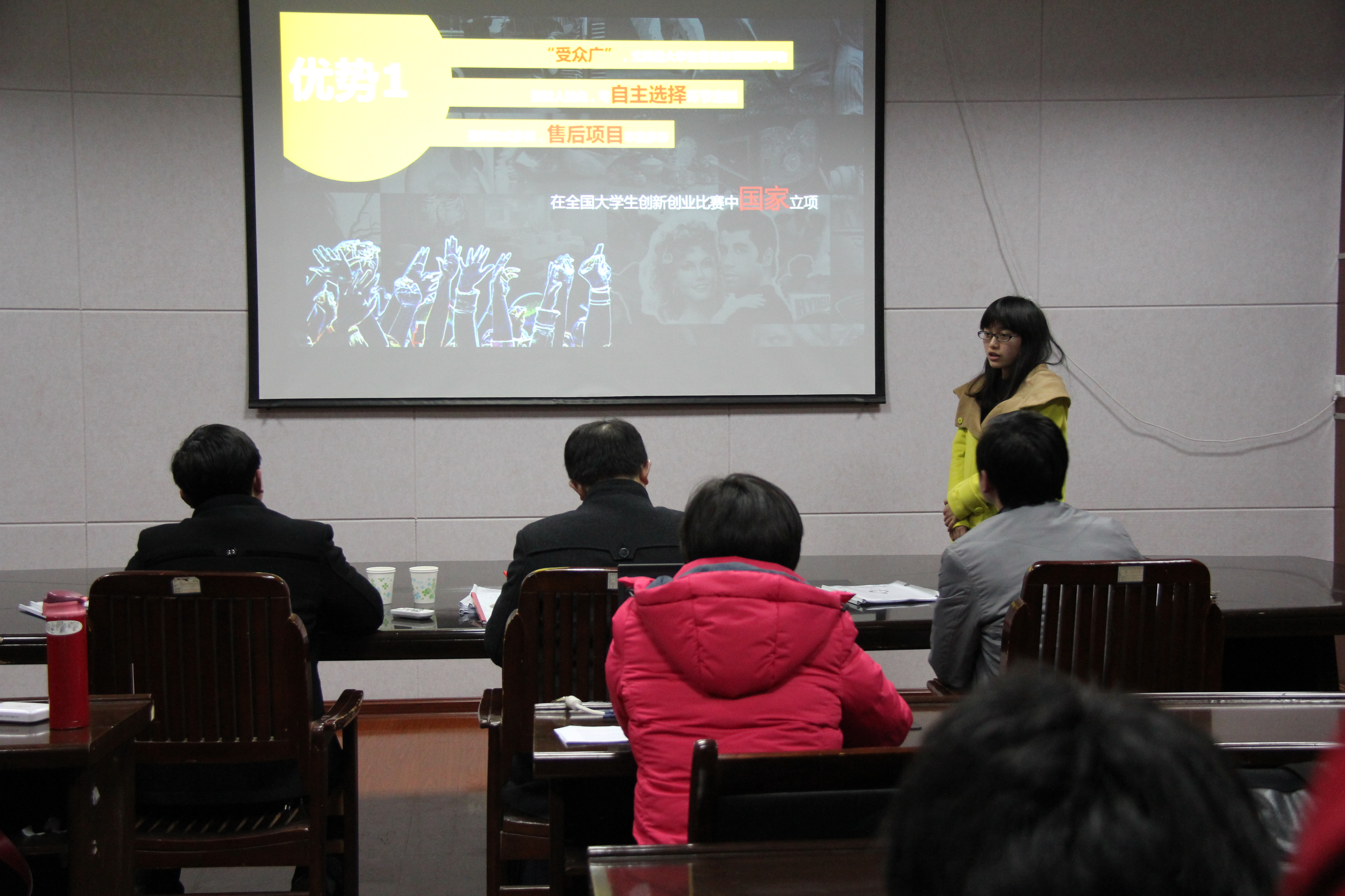 2014年3月4日晚7:00,第七届“挑战杯”老员工创业计划竞赛经济贸易系选拔赛在系会议室拉开序幕。本次大赛以“创新、创业、创未来”为宗旨,着力培养当代老员工创新精神和创业能力,提高员工自主创业的意识。系分管教学工作副主任杨荣明、电子商务教研室主任兼系实训中心负责人吴自爱、团总支负责人王剑程出席此次比赛并担任评委。本次选拔赛共吸引来自系12级、13级各专业的11支团队。