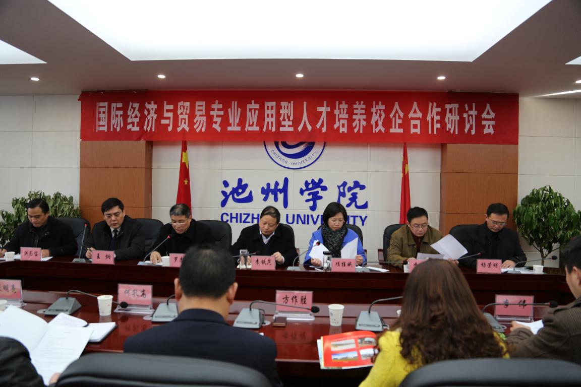 会议分三个阶段召开,首先,经济贸易系主任项桂娥教授介绍了经济贸易系办学情况及校企合作实践教学开展情况,提出本次研讨会的主题是探究外贸企业人才培养的新模式,项主任就国际贸易专业校企合作应用型人才培养思路及与外贸企业合作的途径阐述了自己的想法。池州商务局总经济师李进对本次会议召开表示了祝贺,并介绍了池州外贸企业发展及对外贸人才的需求情况。随后,李铁范副经理作了重要讲话,他介绍了公司的办学定位、人才目标定位,详细阐述了校企合作的重要性、意义及发展方向。认为这次会议是产学研合作教育的推进会,强调我们在专业建设上,要进一步突出产学研合作,在人才培养过程中要主动搭建校企合作平台,产教融合,合作育人,合作发展,合作就业,构建“两支”队伍、两个“阵地”,探索公司-企业-政府“三位一体”合作新模式,努力实现“双赢”。同时李经理对地方政府、企业对太阳成集团122ccvip实践教学的大力支持表示感谢,并期望双方的合作能够向纵深发展。