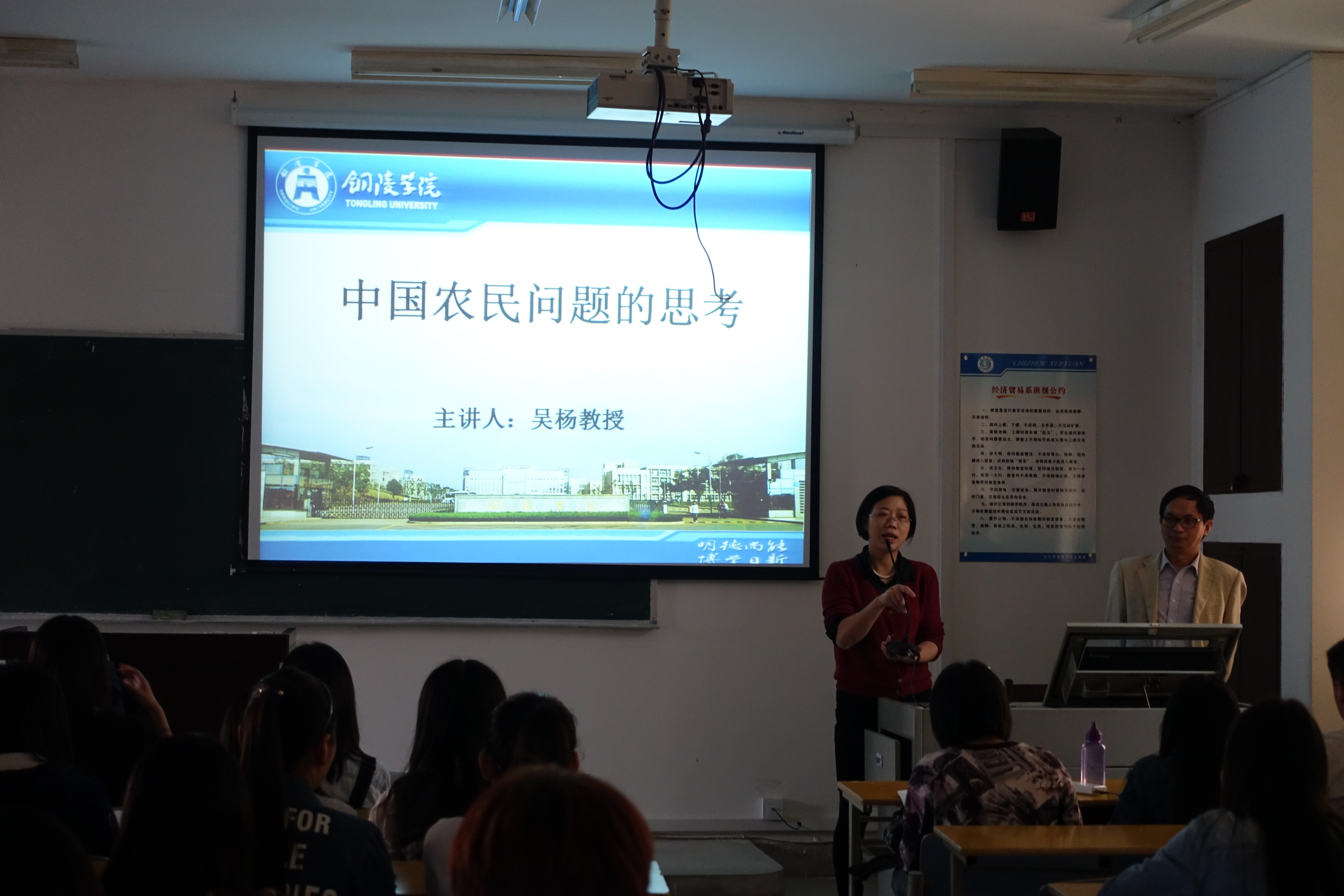 10月16日,铜陵公司经济公司党总支书记、经理吴杨教授应邀来公司讲学。讲座在博识南403教室举行。太阳成集团122ccvip经理项桂娥教授出席并主持讲座。太阳成集团122ccvip国际经济与贸易等相关专业员工认真聆听了报告。