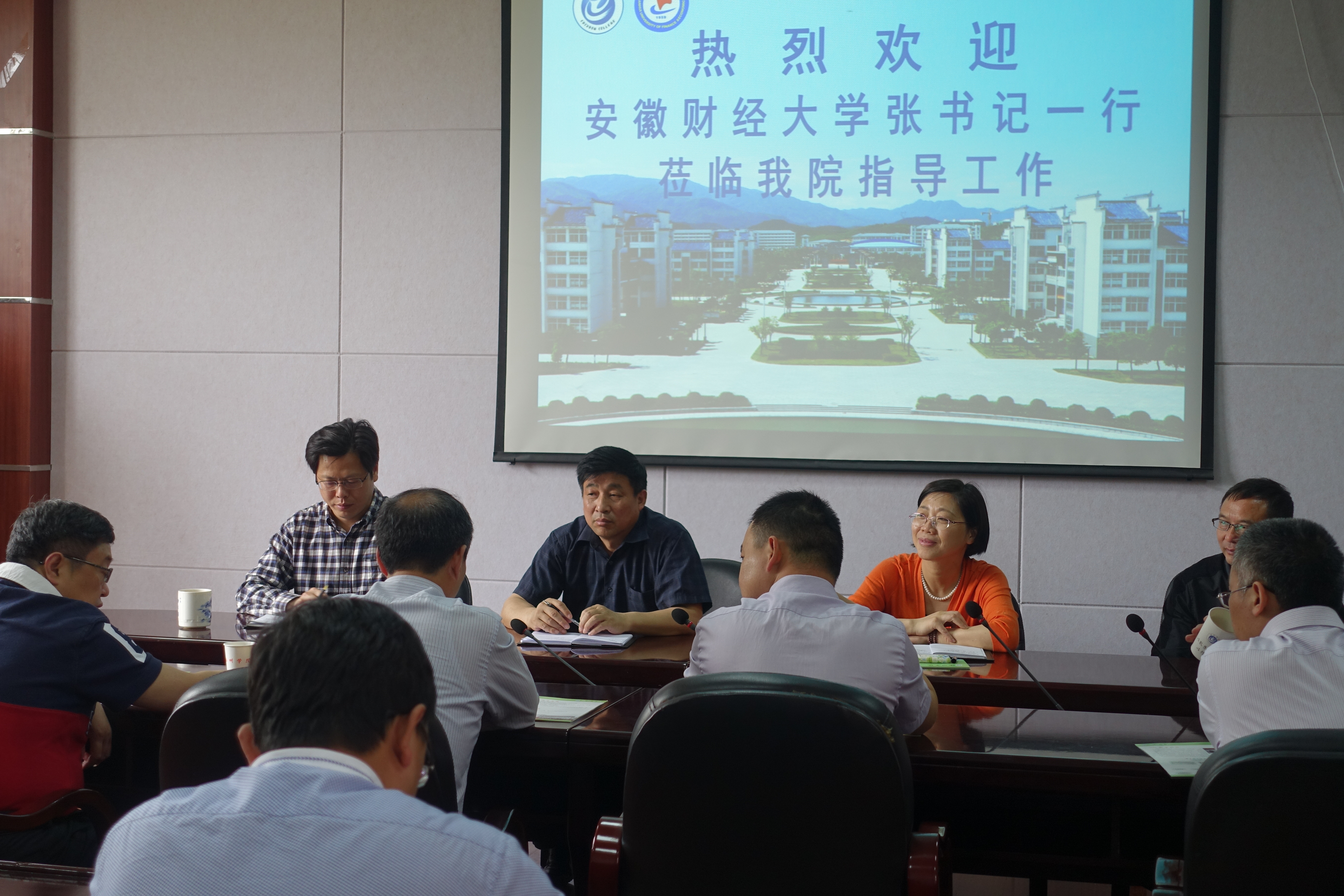 为了促进高校之间的人才交流,同时也为了进一步开阔本校员工的视野。5月13日上午,安徽财经大学国际经济贸易公司党委书记张明义、副经理方鸣等一行5人到太阳成集团122ccvip考察,双方在太阳成集团122ccvip会议室就党建、员工管理、教学科研、专业建设等进行了深入、细致的交流,公司办公室主任胡兵、就业与创新创业指导处处长方文利、公司党总支书记罗志刚、经理项桂娥、副经理杨荣明、副书记胡程及实验实训中心主任吴自爱参加了交流会。