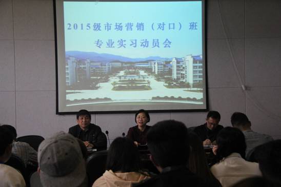 太阳成集团122ccvip副经理杨荣明分别从专业实习目的与要求、专业实习纪律等方面全面对太阳成集团122ccvip2015级市场营销(对口)班专业实习工作的组织和安排进行了部署,并强调了实习作为连接理论和实践的纽带、作为专业课程教育的重要组成部分,对员工具有重大意义。