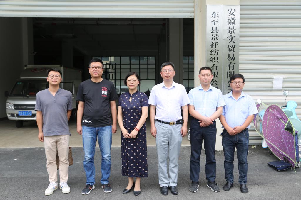 上午10点,考察调研组首先来到东至县尧渡镇袜业小镇园区,安徽景实贸易有限公司开展实地考察调研。企业负责人带领考察调研组参观了生产车间、仓储中心,详细介绍了企业基本情况和电子商务平台建设情况,并就直播电商与考察调研组进行了深度交流。