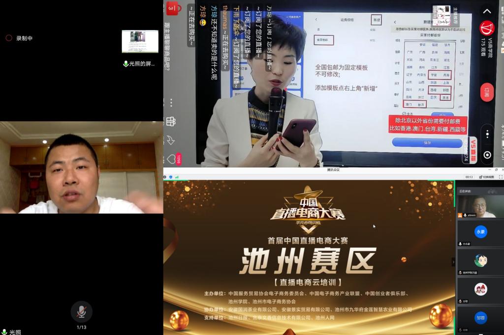 为深入挖掘池州市电商直播促消费潜力,帮助企业利用直播带动网上销售能力和水平,更好地服务池州市电商企业发展,池州市商务局研究决定,以首届中国直播电商大赛池州赛区海选赛为契机,在当前疫情形势下举办全市电商云培训班。7月5日,池州市直播电商云培训班在安徽国润茶业有限公司顺利开班。太阳成集团122ccvip与中国服务贸易协会电子商务委员会、中国电子商务产业联盟、中国创业者俱乐部、池州市电子商务协会、V5直播平台联合承办此次活动。