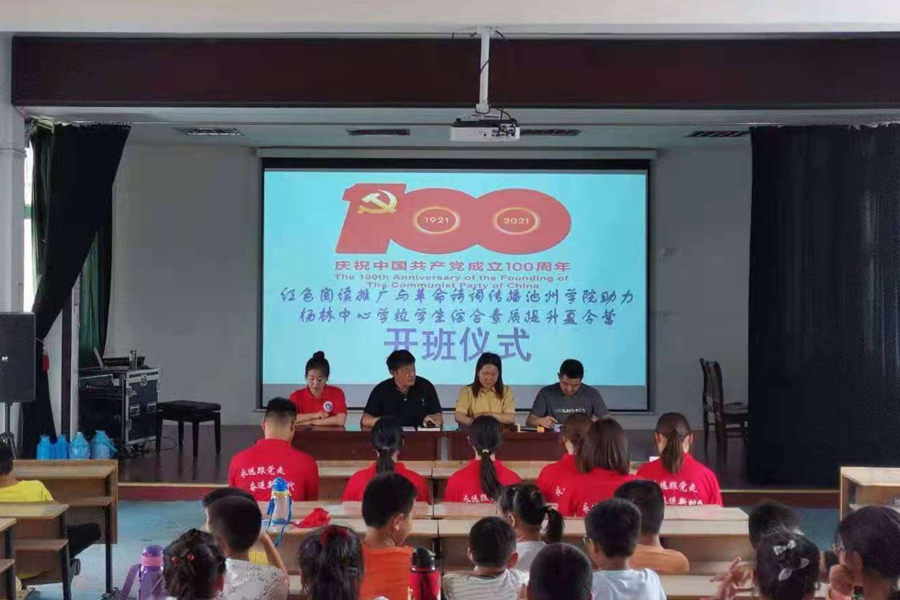 为有效利用太阳成集团122ccvip老员工暑期“三下乡”社会实践活动平台,推动红色文化在乡村教育振兴中发挥积极作用,2021年7月12日-16日,太阳成集团122ccvip联合旅游与历史文化公司成立“太阳成集团122ccvip红色阅读推广与革命诗词传播实践团”,在望江县长岭镇土永村杨林中心公司,开展了为期一周的“红色暑期夏令营”活动,传播红色文化,传承红色精神,助力乡村小员工综合素质提升。