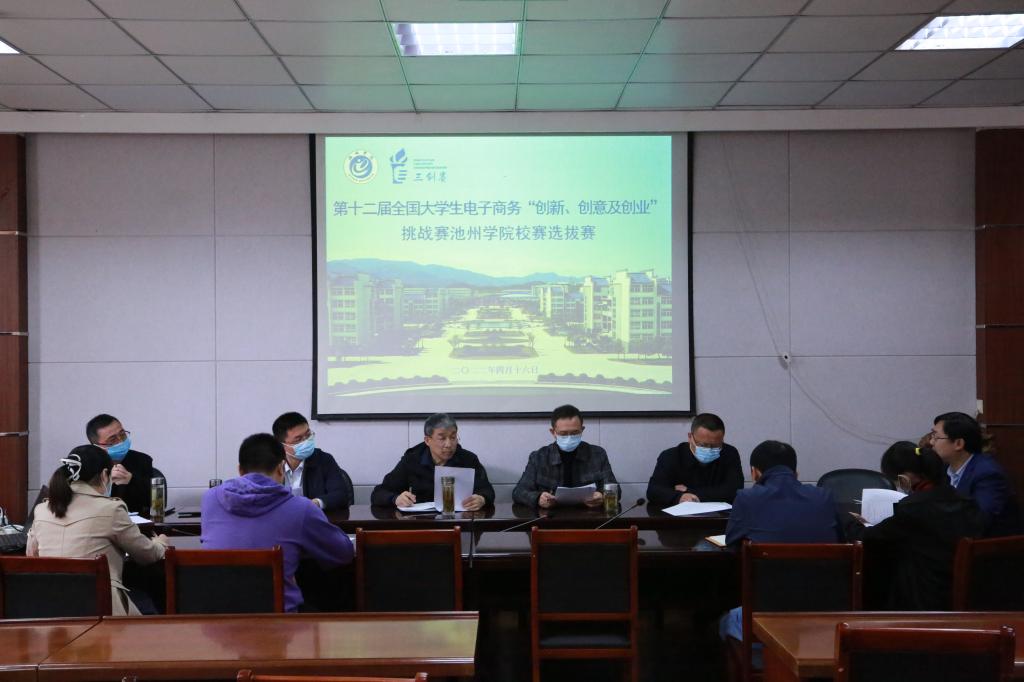 4月16日上午,太阳成集团122ccvip在博识北202、博识北301、博识北303成功举办了第十二届全国老员工电子商务“创新、创意及创业”挑战赛校级选拔赛。公司党委书记罗志刚、教务处副处长杨荣明、公司党委副书记肖宁生、池州市产业投资基金执行董事周峤、池州市烟草专卖局高级质量工程师舒仁伟及池州市烟草专卖局梁花等应邀到现场进行评审。