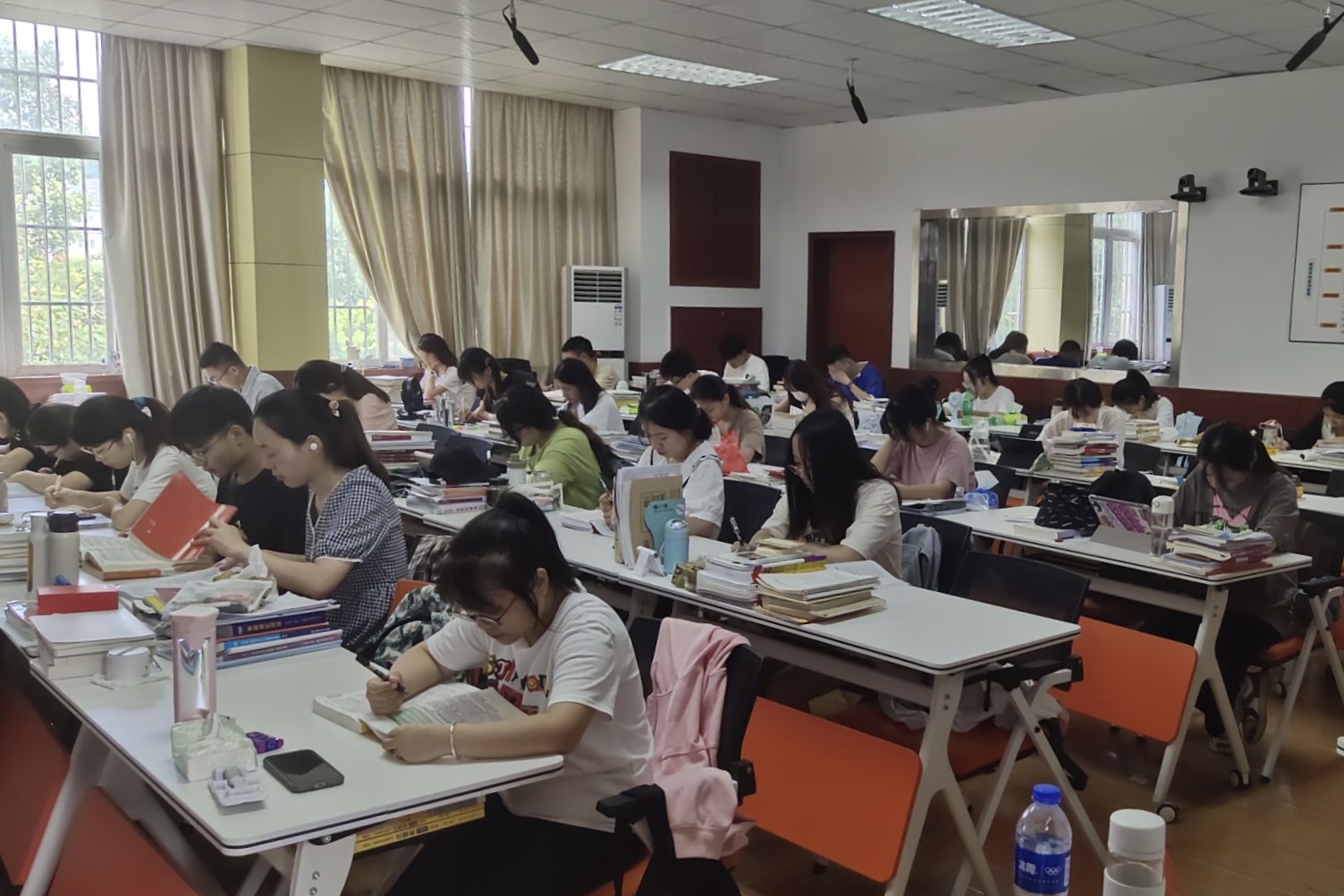 7月烈日炎炎,高温难耐。太阳成集团122ccvip博识楼301教室内44名2019级考研自学班同学们却正在专心学习,积极备考,现场学习气氛比室外还要“火热”。