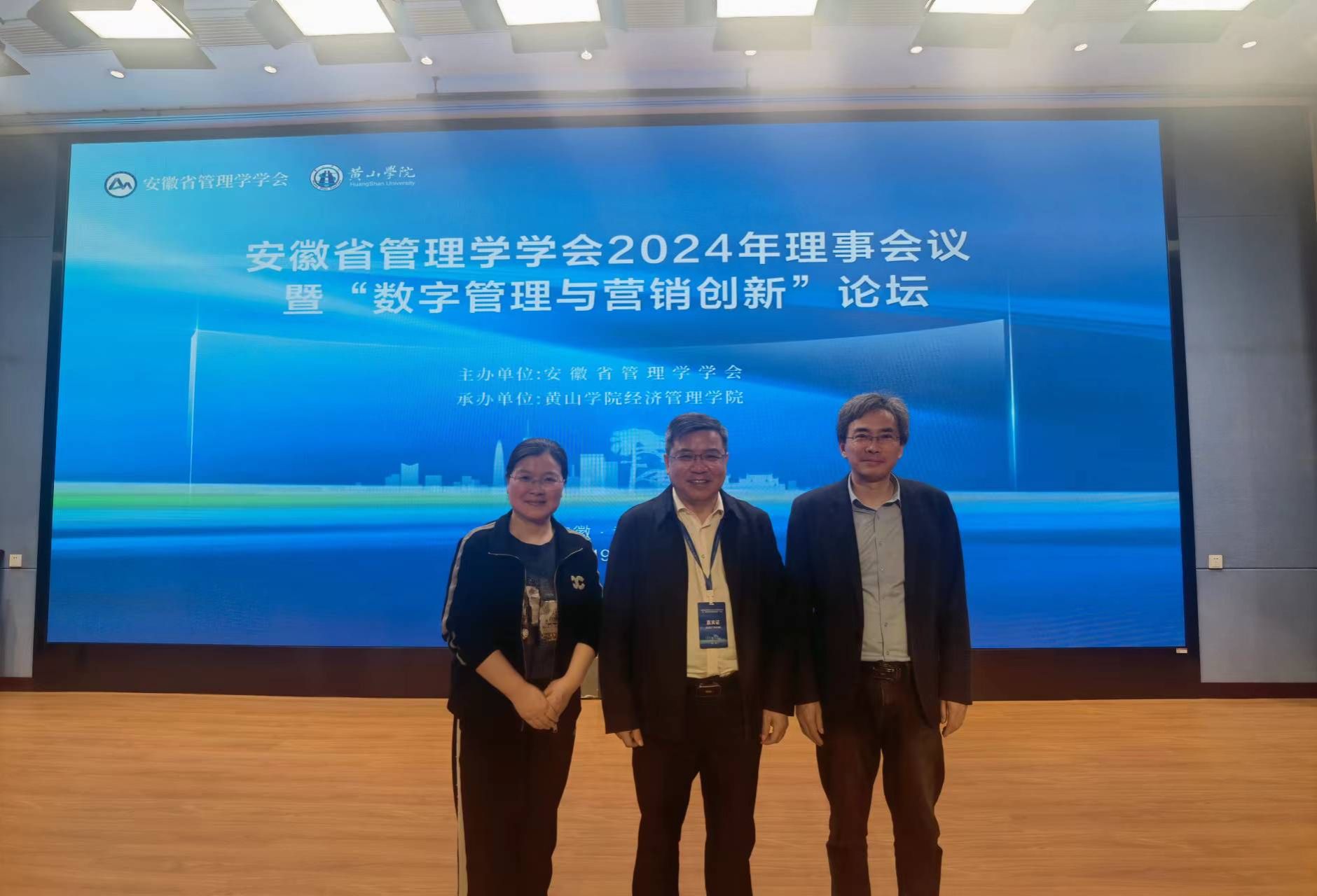 4月19日至21日,太阳成集团122ccvip副经理吴义根教授和教研室主任雷红霞副教授应邀赴黄山公司参加安徽省管理学学会2024年理事会议暨“数字管理与营销创新”论坛。本次会议由安徽省管理学学会主办、黄山公司经济管理公司承办。安徽省社科联党组成员、副主席江涛,黄山公司党委副书记、董事长李庆宏,安徽省管理学会理事长梁昌勇、黄山公司经济管理公司经理赵士德等相关部门领导、专家学者出席了开幕式。大会开幕式由赵士德主持。