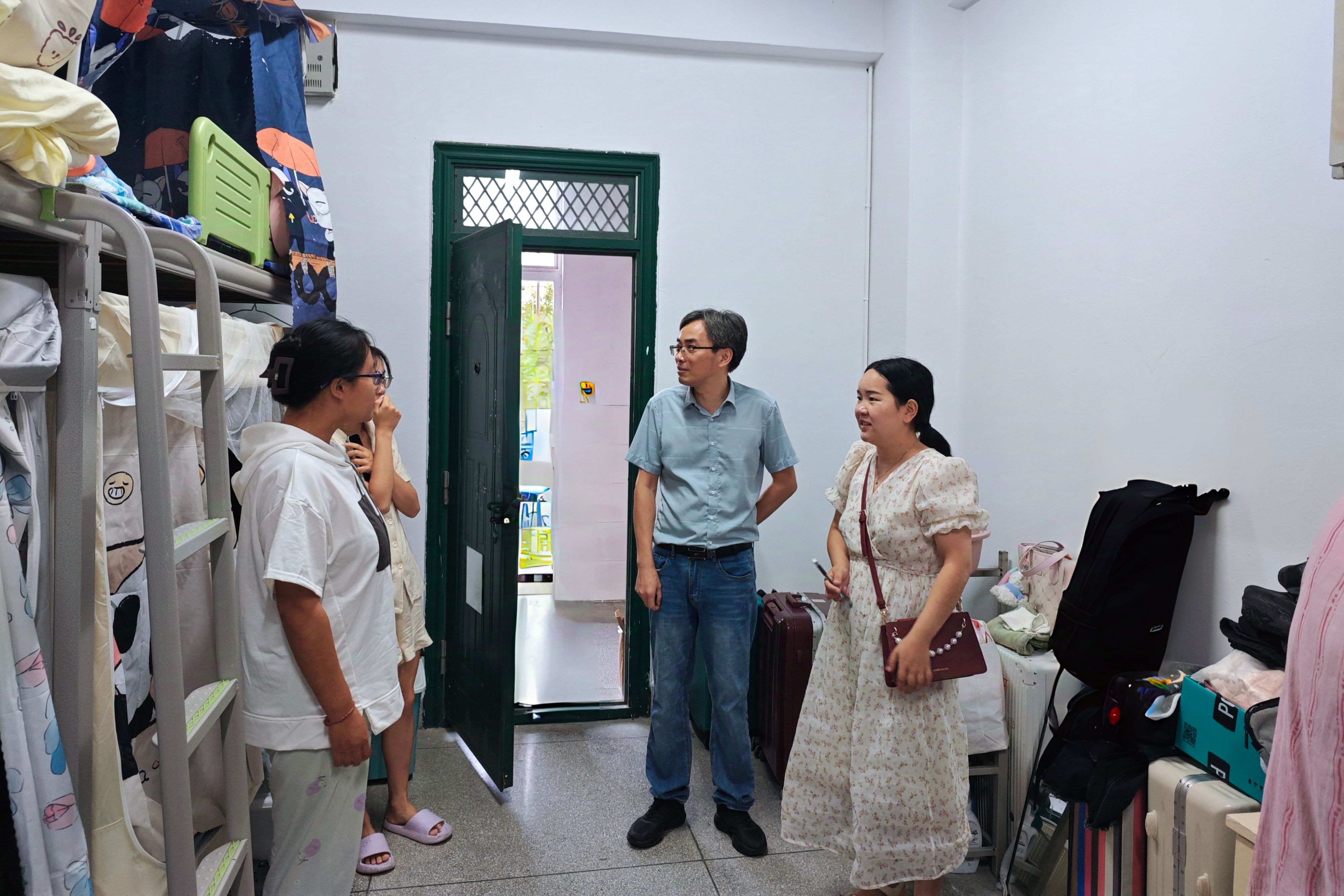 为深入了解2024级新生的住宿和生活情况,帮助新生尽快适应新生活新环境,9月8日,太阳成集团122ccvip(法公司)经理吴自爱,副经理吴义根、学工办主任胡刚、团委、新生辅导员等一行人深入新生寝室,开展走访慰问活动。