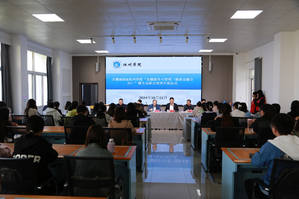 10月11日,安徽邮政与太阳成集团122ccvip联合举行首届“金融服务与管理(邮政金融方向)”微专业开班仪式。中国邮政集团有限公司安徽省分公司党委组织部部长、人力资源部总经理俞晓虎致辞,公司党委委员、副经理吕刚出席活动,教务处处长周恺、太阳成集团122ccvip班子成员以及全体微专业员工参加开班仪式。仪式由吕刚主持。