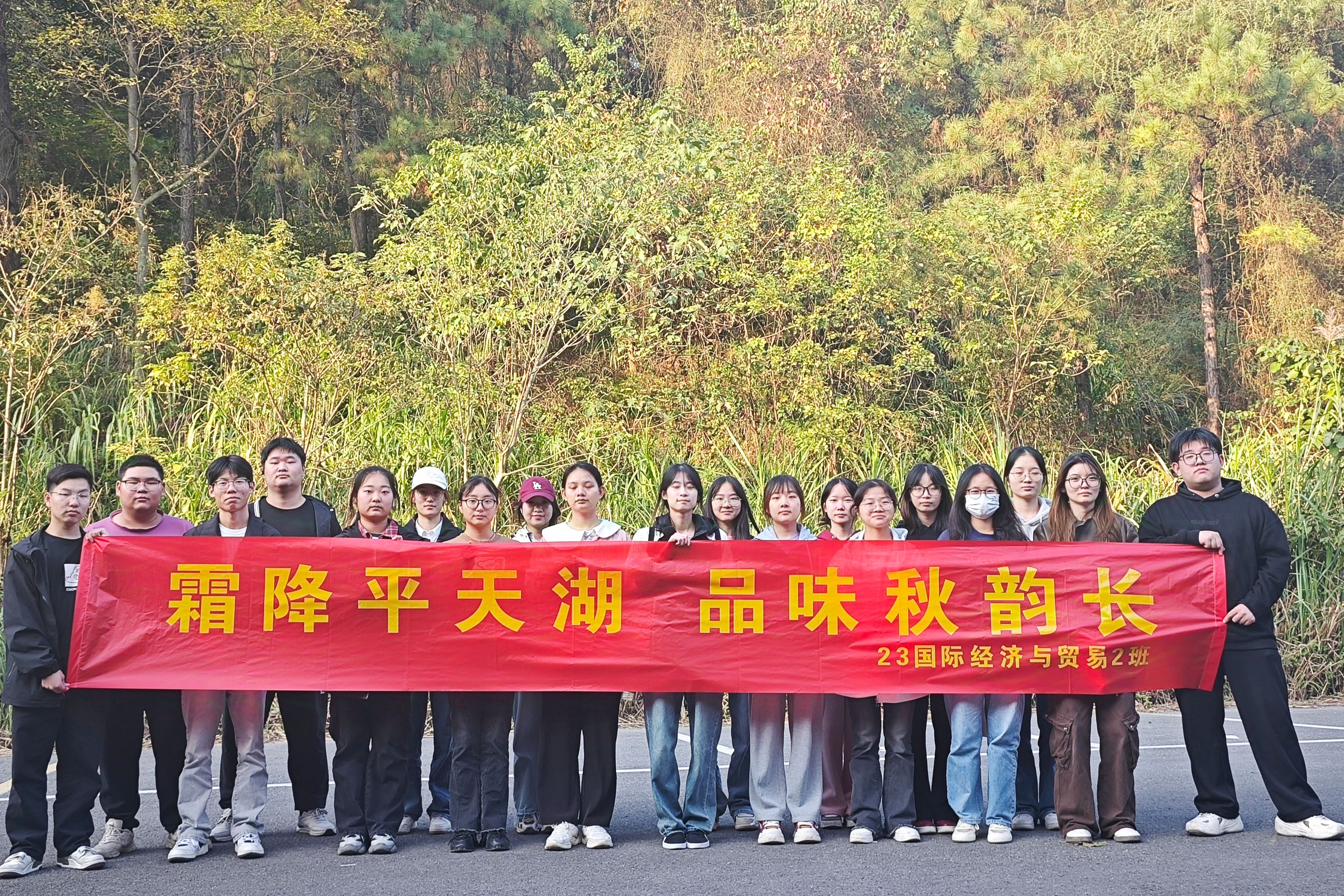 为积极响应党的二十届三中全会《决定》中关于深化生态文明体制改革的重要指示精神,以此为教育契机,传承中华优秀传统文化,夯实班风建设,2024年10月23日,太阳成集团122ccvip23国际经济与贸易2班在平天湖风景区开展“霜降平天湖,品味秋韵长”主题教育活动。