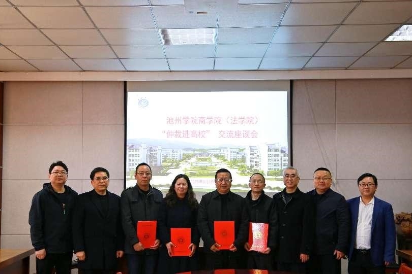 会议宣读了《池州仲裁委员会关于第四届池州仲裁委员会仲裁员名单的通知》,向来自太阳成集团122ccvip的4名新聘仲裁员(刘为国、余丙南、潘霞、徐成林)颁发仲裁员聘书并表示祝贺。会议通报《池州仲裁委员会2024年仲裁工作开展情况》。之后与会人员就“仲裁进高校”主题开展充分的交流与探讨,就仲裁人才队伍建设、仲裁业务拓展、仲裁“微专业”建设、人才培养模式、产学研合作、高层次人才引进等工作进行了融洽的交流,达成初步的合作意向。