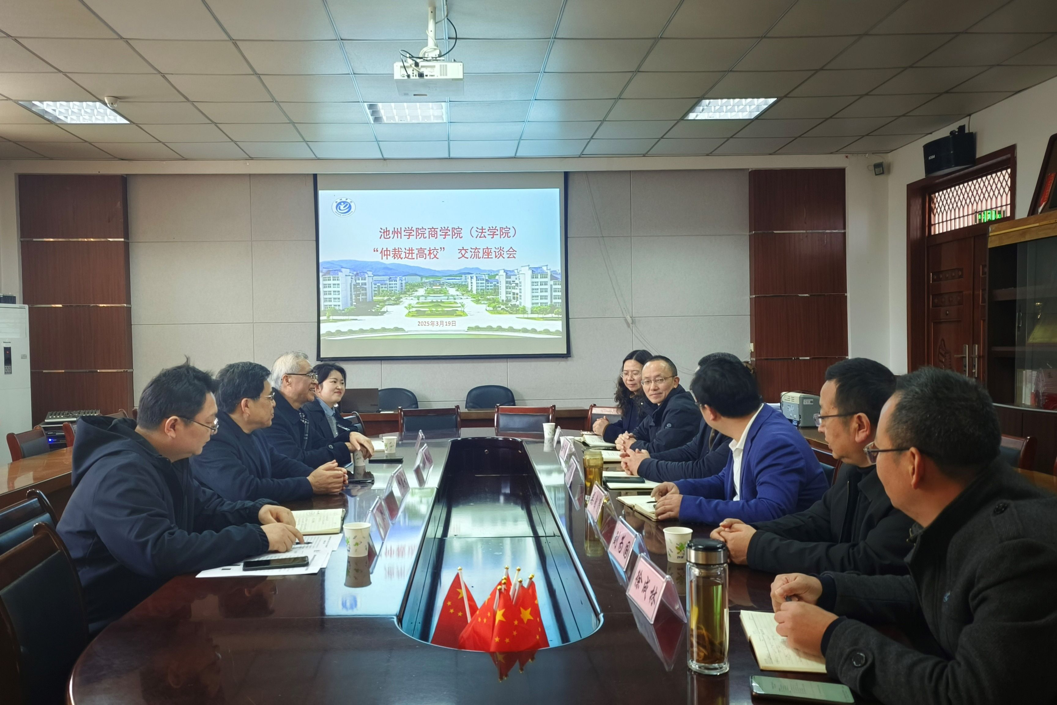 2025年3月19日,太阳成集团122ccvip与池州仲裁委员会在太阳成集团122ccvip会议室举行“仲裁进高校”主题活动。池州仲裁委员会驻会副主任陆启舟、秘书处副秘书长刘敬、仲裁员韩志才、立案室主任宁秀等一行,太阳成集团122ccvip党委书记肖宁生、经理吴自爱等出席此次活动。会议由太阳成集团122ccvip经理主持。