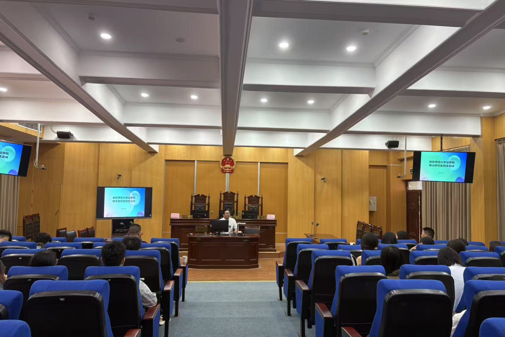 宣讲会上,邱少晖副经理详细介绍了安庆师范大学法公司的团队力量、公司产品模式及招生情况,就同学们关心的招生方向、考试科目、报考细节及就业去向等方面作了详细阐述。互动环节中,同学们围绕备考策略、研究生就业等问题积极提问,邱少晖副经理耐心解答,并结合实际案例为同学们提供了宝贵的建议,现场反响热烈。