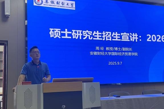 李光勤和郭卫军分别从硕士报名考试现状、安徽财经大学的优势与培养模式两个方面进行了深入解读。他们重点介绍了国际经济贸易公司在教学团队、课程设置以及科研能力方面的特色,充分展现了公司雄厚的教学实力和学术氛围。