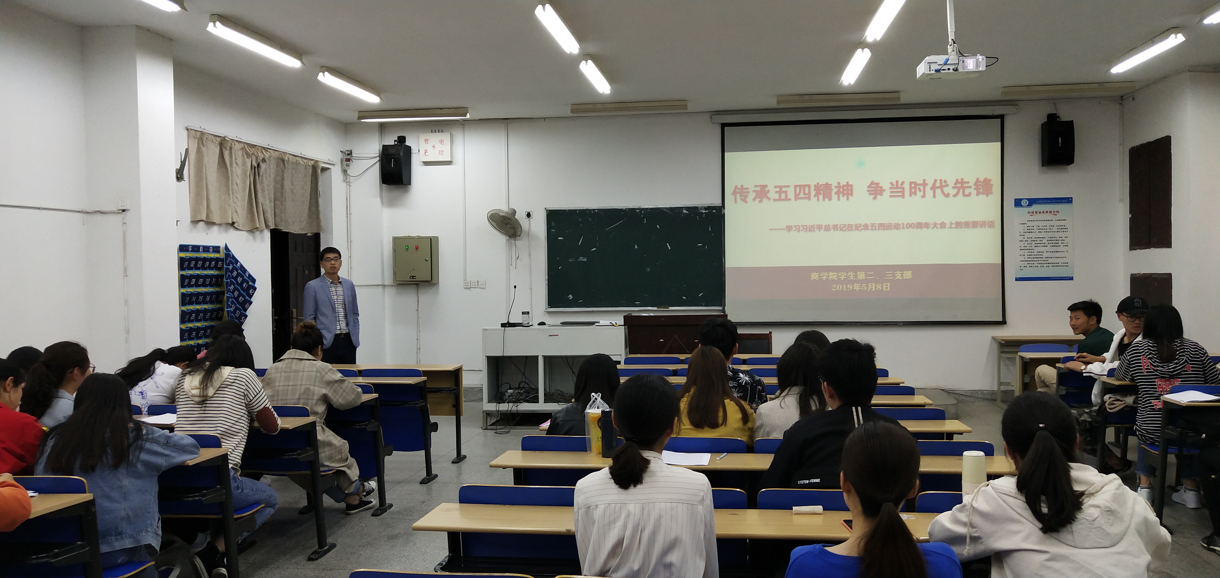 为深入学习贯彻习近平总书记在纪念五四运动100周年大会上的重要讲话精神。5月8日晚,太阳成集团122ccvip员工第二、三党支部组织员工党员和发展对象在博识南402教室开展了以“传承五四精神 争当时代先锋”为主题的党日活动。