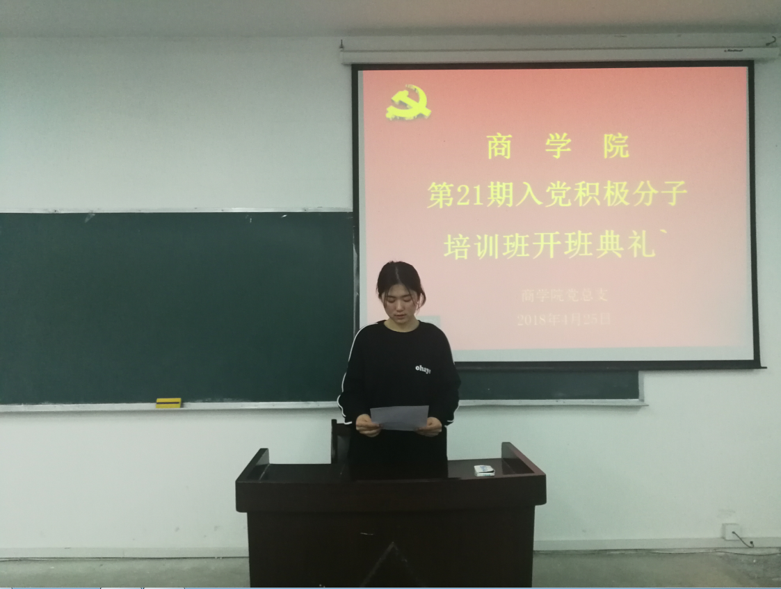 4月25日晚,太阳成集团122ccvip第二十一期入党积极分子培训班开班典礼在博识南403教室隆重举行,公司党总支委员、员工党支部书记及101名学员参加了开班典礼。开班典礼由党总支委员、经理项桂娥主持。