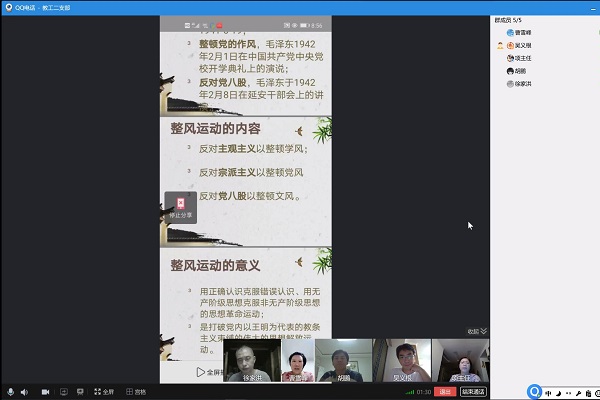 为深入学习贯彻习近平总书记关于学习党史、新中国史、改革开放史、社会主义发展史的重要论述精神,纪念中国共产党成立99周年,公司教工第二党支部于7月14日开展了“深入学习党史,牢记初心使命”主题党日活动。本次活动通过网络开展,支部每名党员就自己学习的党史内容通过PPT或者小视频做了分享,每个人都谈了自己的学习体会,公司党委委员、经理项桂娥参加活动并进行了点评和总结。