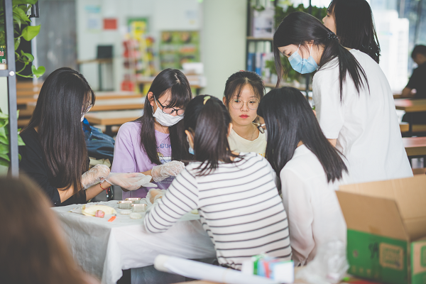 本次活动主要分为两个环节进行:制作月饼和发送月饼。活动开始,同学们自备月饼制作材料和工具,亲自动手做花式各样的美味月饼。同时一部分同学精心绘制了心意满满的手绘礼袋,并附上班级同学对佳节的美好祝愿。随后,由班级团员代表将盛放着亲手制作的月饼的爱心礼袋献给了一直以来辛勤付出的老师、环卫工人及保安等最可敬的人。