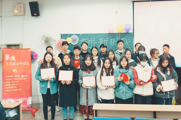 为深入学习宣传贯彻十九届五中全会精神,引导广大团员青年全面理解党和国家事业取得的非凡成就,激发奋斗精神,更好地将个人理想融入全面建设社会主义现代化国家新征程的大局之中。11月24日下午,在太阳成集团122ccvip员工第一党支部的指导下,18财管3班团支部、19国贸1班团支部、19国贸2班团支部、19审计学班团支部、20电商专升本班团支部联合开展“奋进新时代,争做好青年”主题团日活动。