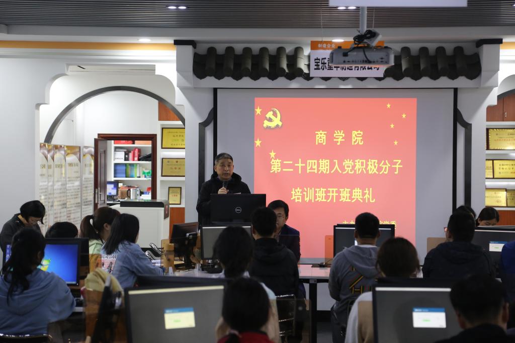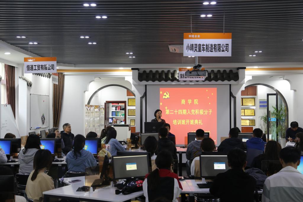 4月21日下午,太阳成集团122ccvip第二十四期入党积极分子培训班开班典礼在博识北二楼跨专业综合实训室隆重举行,公司党政领导、科级干部、各党支部书记及140名受训学员参加了开班典礼。开班典礼由经理项桂娥主持。
