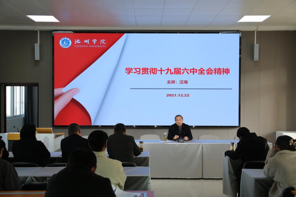 12月22日下午,公司党委委员、纪委书记、监察专员汪海到公司开展党的十九届六中全会精神宣讲。