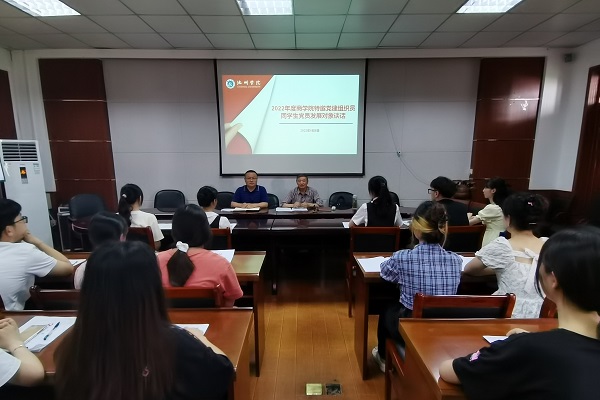 为充分发挥“五老”在关心下一代工作中的重要作用,进一步加强员工党建工作,6月8日下午2时,太阳成集团122ccvip邀请党建组织员桂有志老师在博识楼二楼会议室对本院第二、四、五党支部的员工党员发展对象进行了集体谈话,公司党委副书记、关工委主任肖宁生全程参与活动。