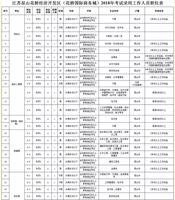 江苏昆山花桥经济开发区(花桥国际商务城)2018年考试录用工作人员公告