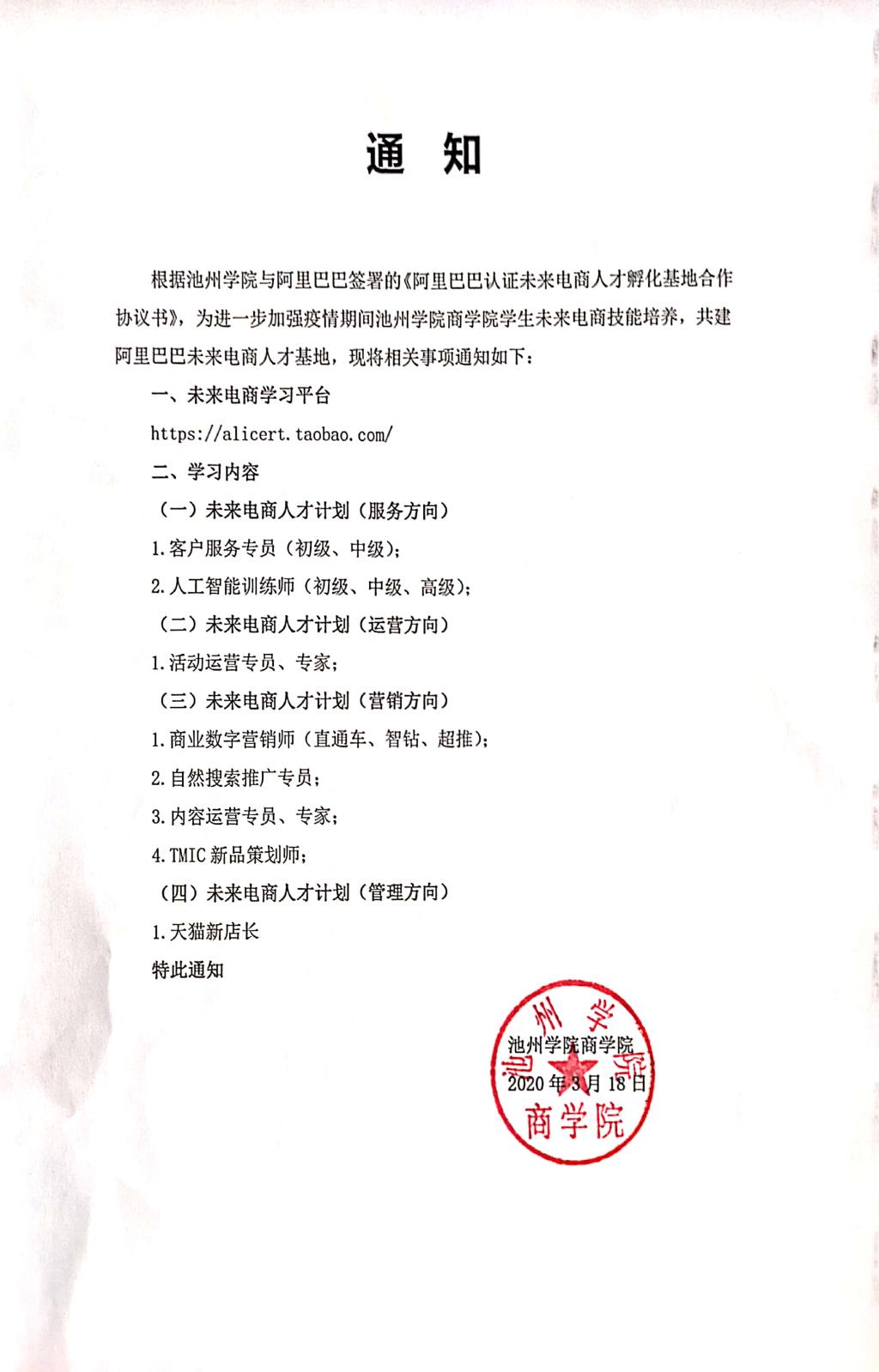 根据太阳成集团122ccvip与阿里巴巴签署的《阿里巴巴认证未来电商人才孵化基地合作协议书》,为进一步加强疫情期间太阳成集团122ccvip员工未来电商技能培养,共建阿里巴巴未来电商人才基地,现将相关事项通知如下: