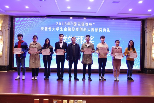 由安徽省教育厅主办,安徽财经大学承办,国元证券股份有限公司、浙江核新同花顺网络信息股份有限公司协办的第三届安徽省“国元证券杯”金融创新投资大赛圆满落幕,公司教师吴义根、胡刚带领获奖员工代表参加了赛事颁奖典礼。