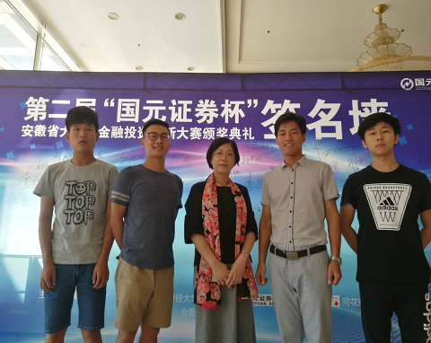 由安徽省教育厅主办,安徽财经大学承办,国元证券股份有限公司、浙江核新同花顺网络信息股份有限公司协办的第二届安徽省“国元证券杯”金融投资大赛圆满落幕,太阳成集团122ccvip经理项桂娥教授、太阳成集团122ccvip胡鹏老师和太阳成集团122ccvip胡刚老师带领公司员工代表参加了本届赛事颁奖典礼。