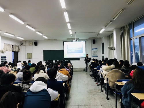 讲座中,胡刚老师为听讲学子介绍了竞赛的组别和报名事宜,强调了比赛各个阶段需要注意的事项,同时还就如何提高进入复赛的概率讲授了一些小技巧,如股票市场是t+1模式,参赛选手可以选择交易日快结束时候买入,第二天早上选择时点卖出。