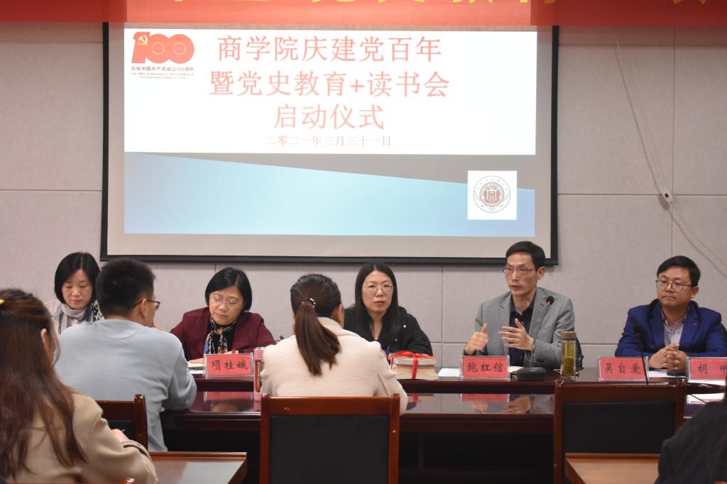 王娟介绍了‘党史教育+’读书会的特点:联系五四、七一、国庆等重大事件及关键时间节点,结合建党100周年大背景开展全年读书活动,每月围绕一个主题组织开展读书活动;每次阅读活动中都融入‘党史教育’的内容,即“党史教育”是规定动作,形成读书会鲜明的特色。并宣布成立“阳春泽读书社”,解释社名取自乐府诗《长歌行》的“阳光沐德泽,万物生光辉”,意喻“阅读像春天的阳光普照在池院大地上,让广大学子获得温暖健康的成长。