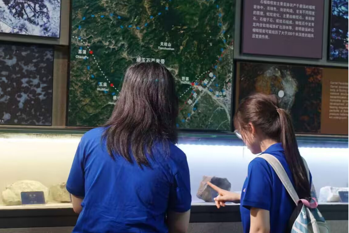 实践团首站抵达天柱山地质博物馆与文化研学基地,从自然与人文双重维度开启调研征程。在地质博物馆,三维影像生动展现潜山砂砾岩土壤、富硒生态环境与昼夜温差等独特气候条件,揭示瓜蒌生长的“自然密码”。