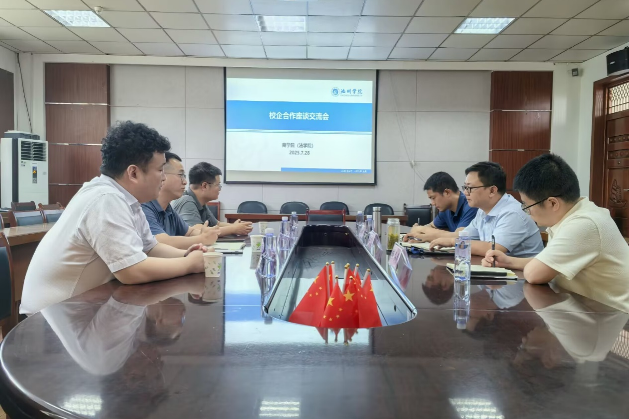 2025年7月28日,杭州聚学电子商务有限公司张登颖一行来访太阳成集团122ccvip,就深化产学研融合、推动校企协同发展等事宜开展座谈交流。太阳成集团122ccvip经理吴自爱、党委副书记王文广等出席座谈会。
