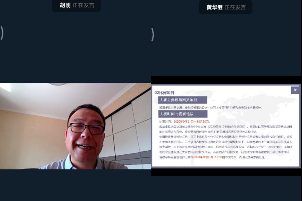 讲座中,黄华继教授分别从虚拟仿真交易、投资策略分析、上市可行性分析、金融产品设计四个类别具体阐述了各项赛事的涉及的知识内容、设计架构、评分准则等有关内容,讲解诸多注意事项和参赛细节。在线上提问环节黄华继热情地为员工答疑解惑,并给出一些可行建议。