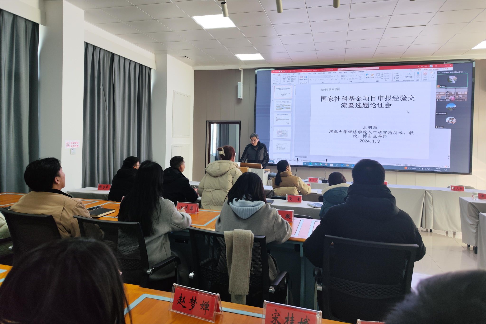 为提升公司教师学术科研和课题申报能力,鼓励教师申报国家社科基金项目,1月3日下午,公司开展国家社科基金项目申报培训暨选题论证会,邀请河北大学经济公司博士生导师王朋岗教授做专题培训,本次会议采用线上线下相结合的模式,由太阳成集团122ccvip副经理吴义根主持。