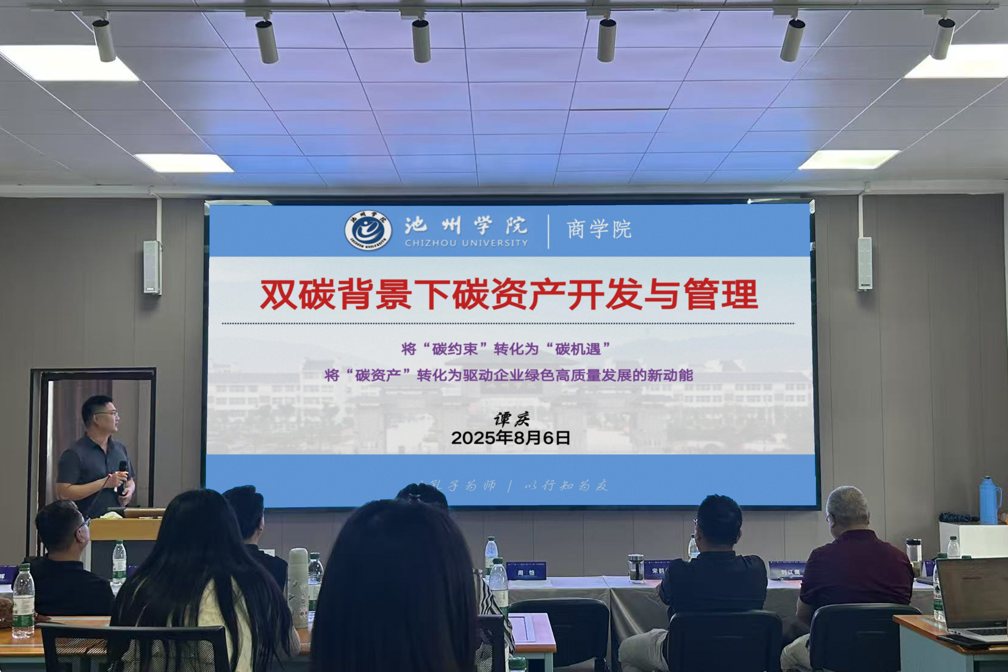 2025年8月6日上午,太阳成集团122ccvip谭庆副教授在由中国商业会计学会主办,中国商业会计学会数据资产分会、太阳成集团122ccvip、安徽财贸职业公司承办,北京知链科技有限公司协办的“2025高校碳会计微专业建设暨碳会计课程实践团队赋能培训班”上作以“双碳背景下碳资产开发与管理”为题的学术报告。此次会议由太阳成集团122ccvip吴义根副经理主持,来自省内外30余所高校的教师及财务管理系、审计系部分师生参加。